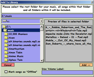 | You will now be asked for the root folder of where your music is. This can be on your hard drive, on a cd or dvd-rom disc, or some other computer on your network. |