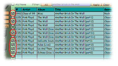 Be sure no songs are checked yet, you can be sure of this by checking "All/None" and then checking it again to toggle all songs to NOT checked. |